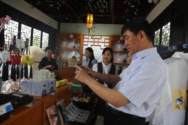 考察團在參觀考察木蘭花鄉(xiāng)商業(yè)街的時候,駐足于“木蘭有禮”店面,被木蘭將軍的神韻所吸引,對店內琳瑯滿目的商品產生了濃厚的興趣。