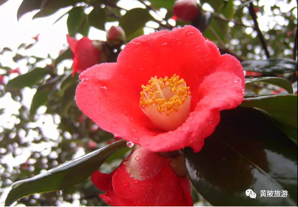 花期時,木蘭山上木蘭花苑的木蘭花依次開放,紅的耀眼,一棵達500年樹齡的木蘭花樹,更是花開繁茂,千朵萬朵盛放在枝頭,極其漂亮。