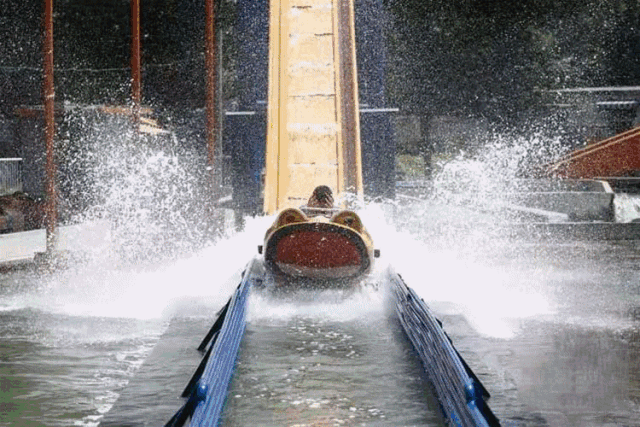 從20米的高空順流直下,坡地水池里的水花驚濤拍岸,體會心臟提到嗓子眼的失重感,整個過程刺激又有趣。